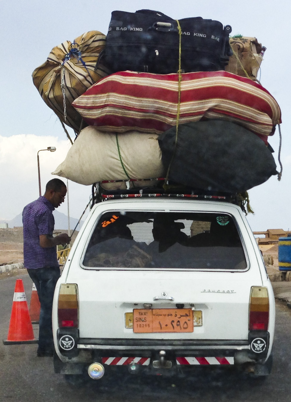 It would require three taxis in three countries, and two Middle Eastern border crossings. The risk of something going wrong was high, but it was certainly the cheapest option – and if all went to plan it could even turn out to have been a better option than the ferry. He bargained us a great price for a taxi to the Egyptian border and then wished us luck and returned to his bus to drive the tour group.